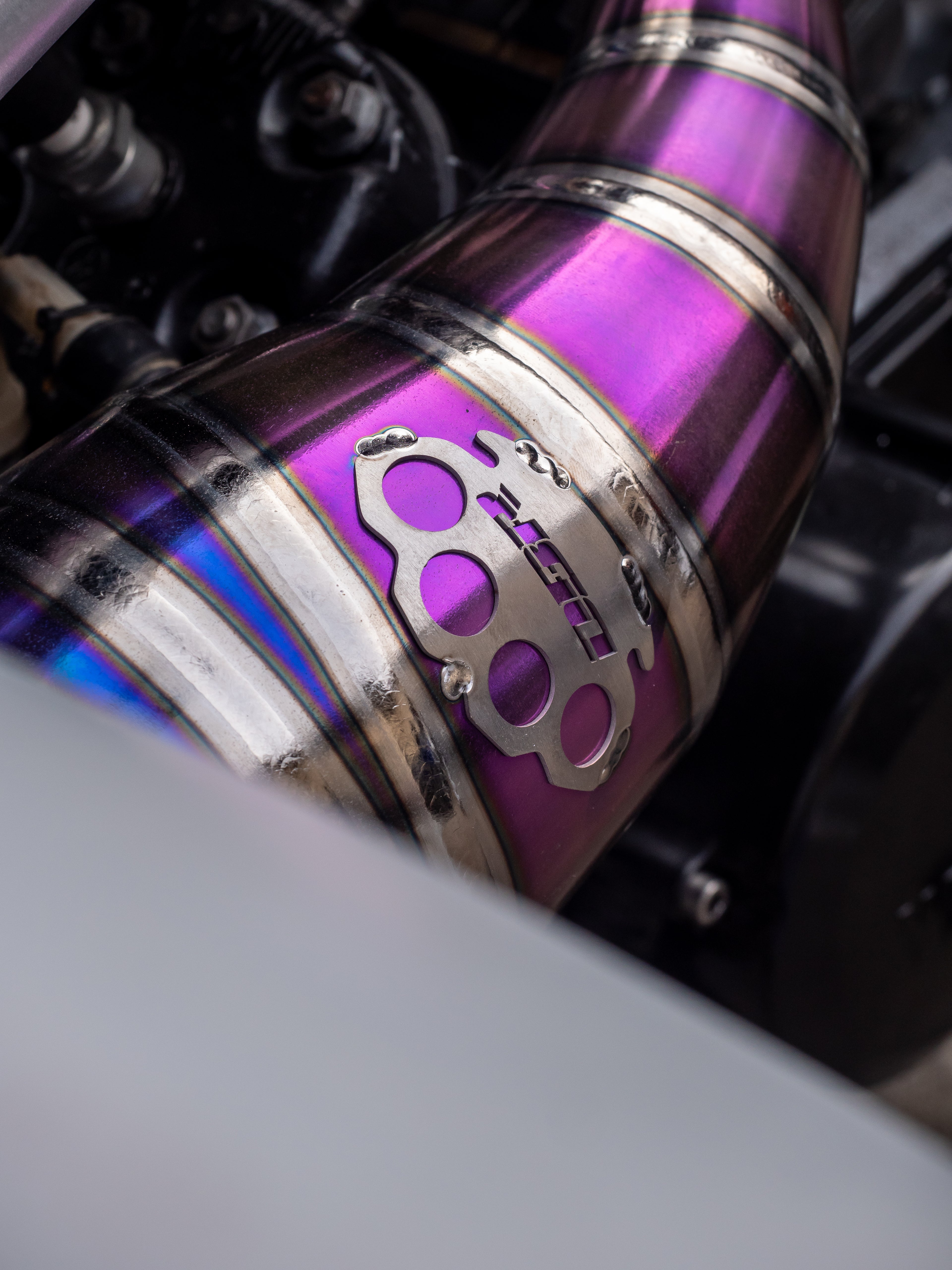 Custom Titanium Collector for KTM 450 SMR 2024 – Multicolor Finish with Purple Dominance