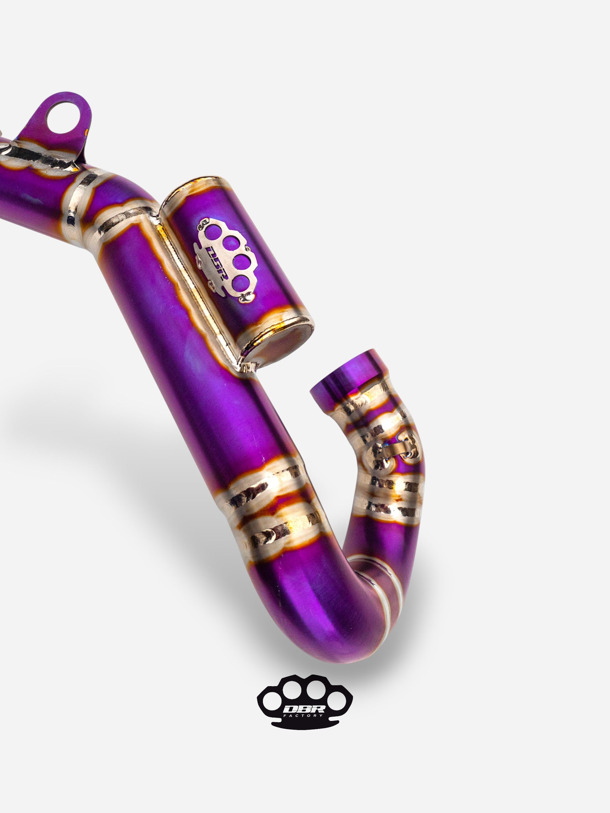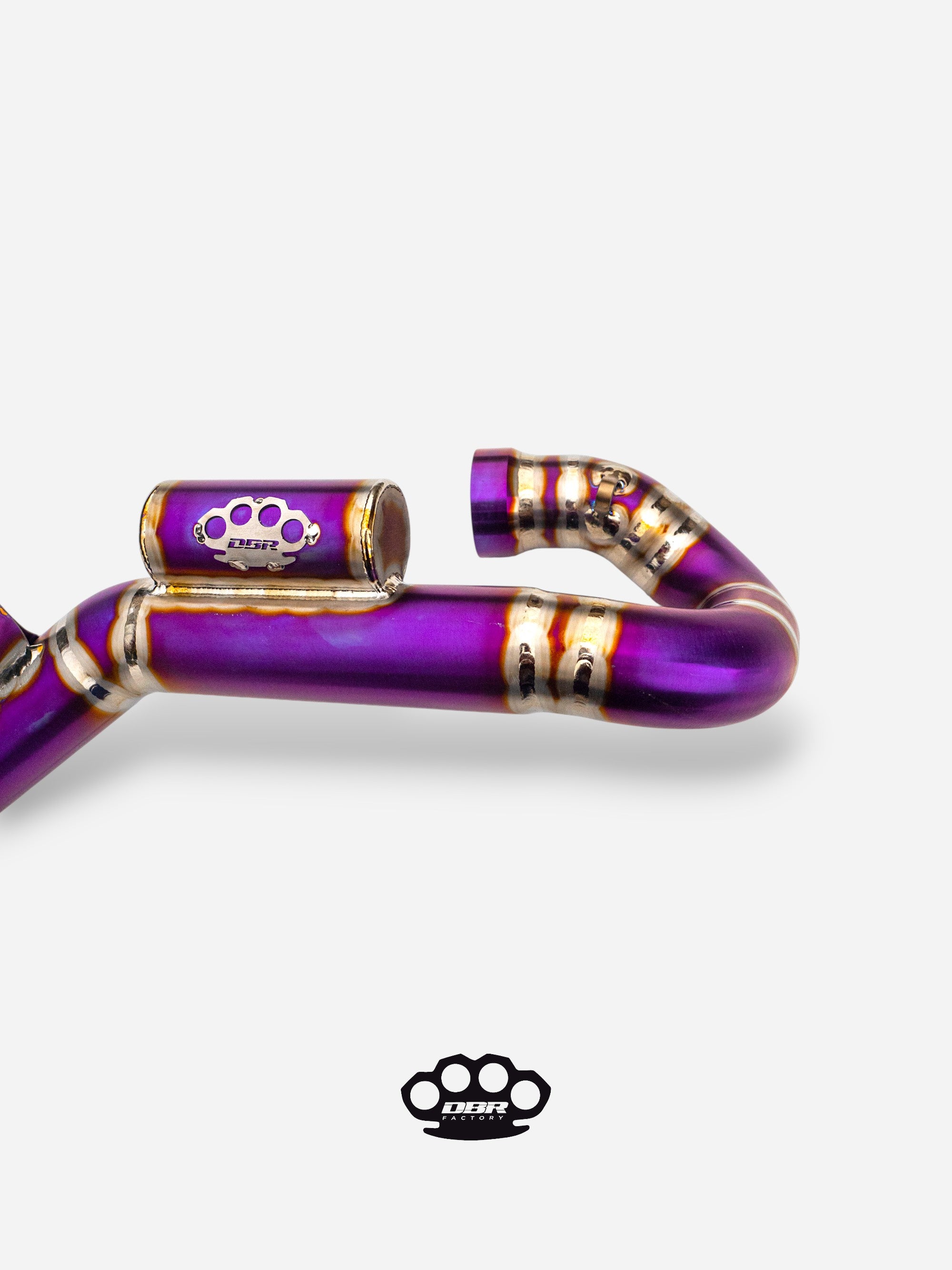 内蔵されたパワーボム膨張室により、DBRマニホールドは排気ガスの逆圧を制御し、低中回転域でのトルクを大幅に向上させ、より力強い伸びを実現します。日本製チタンの構造は優れた熱放散性を持ち、過酷な使用条件下でもエンジンをより冷却状態に保ちます。