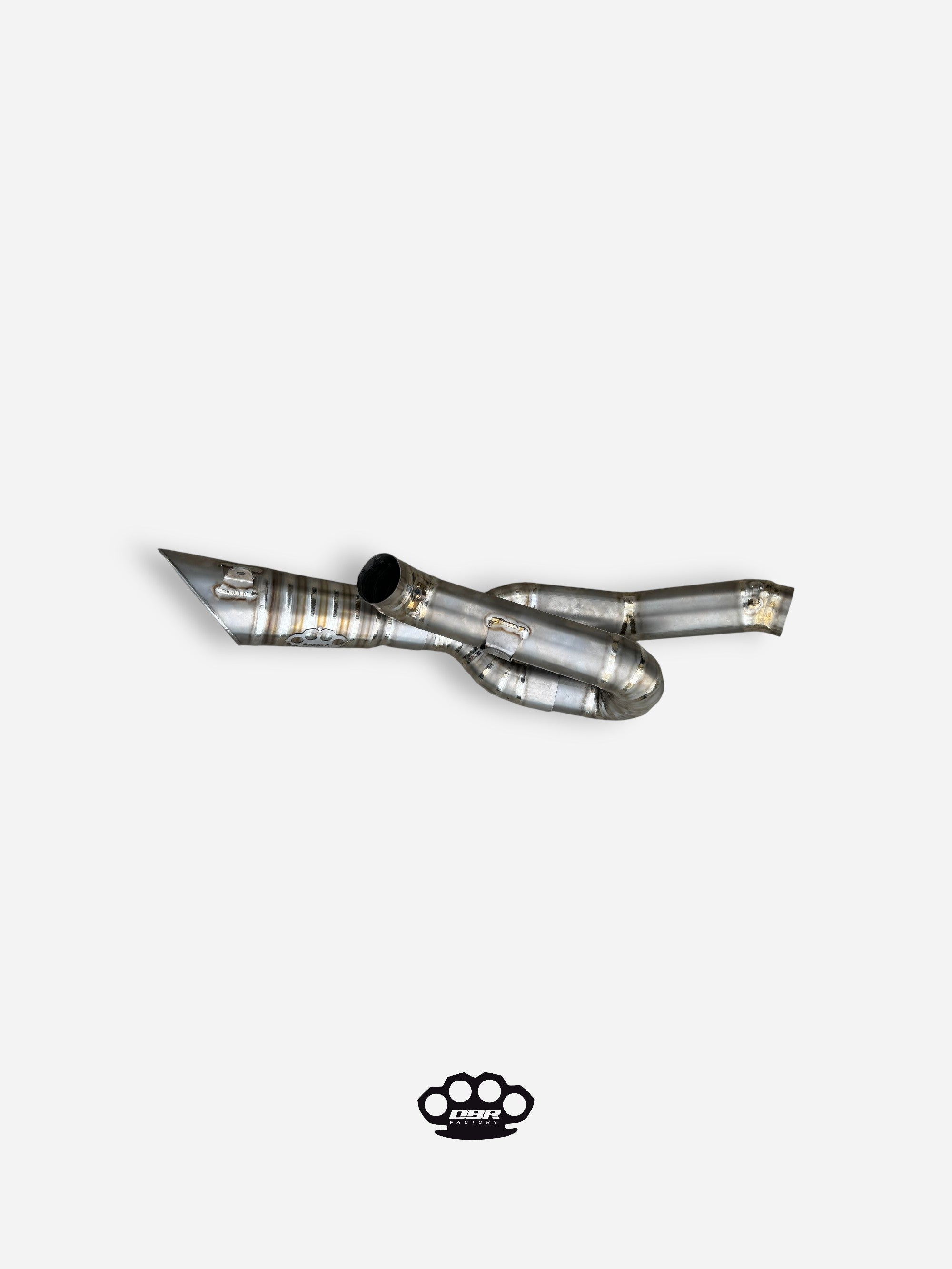 The DBR Complete Titanium Exhaust is designed for motorcyclists seeking high performance and a racing aesthetic. This exhaust system represents a perfect combination of sophisticated design and advanced functionality, ideal for the Ducati Streetfighter V4 and Panigale V4 (2018–2024).