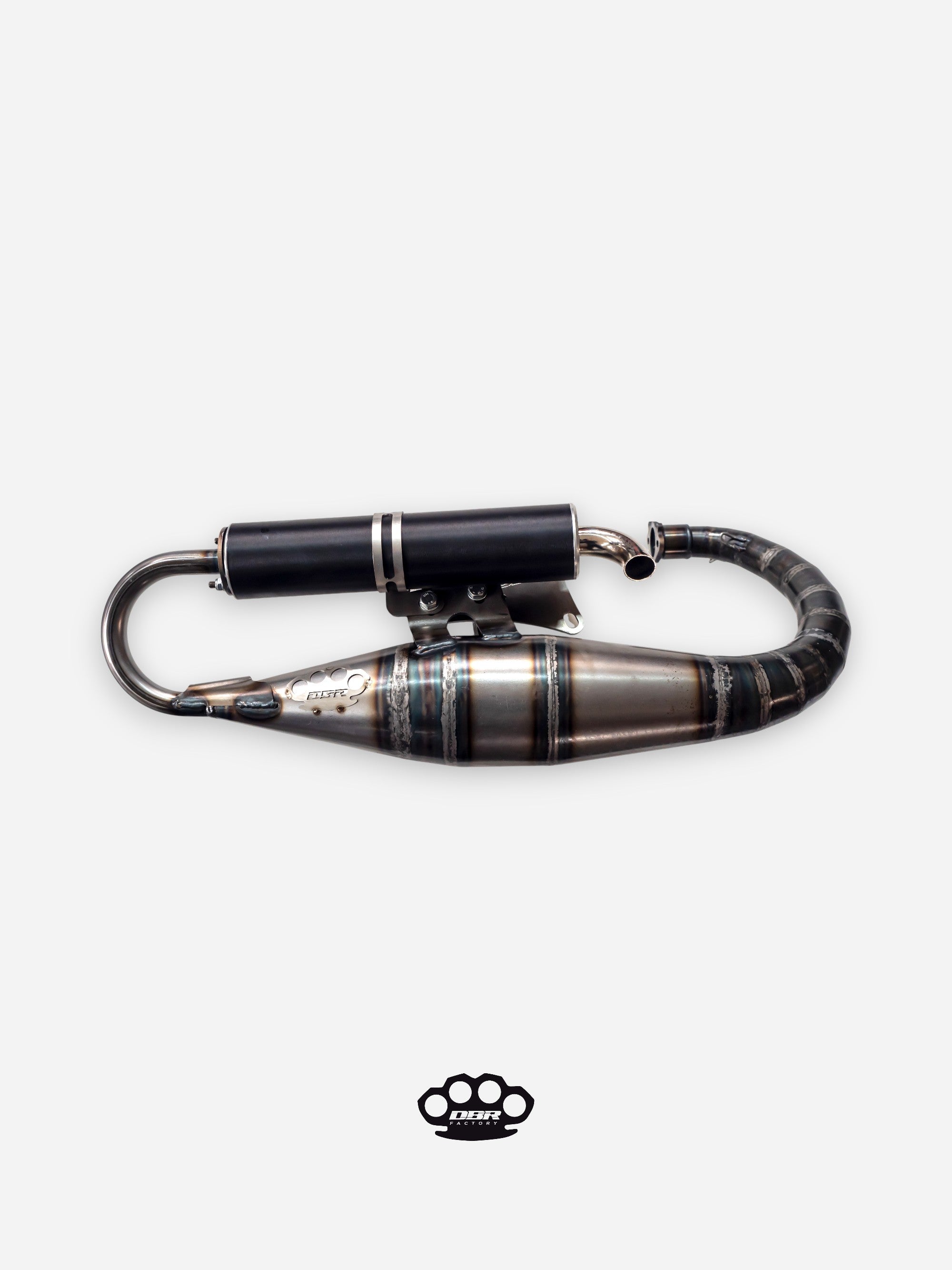 The DBR Minarelli Vertical Intermediate exhaust is designed to ensure a significant performance boost across the entire power range. Perfect for intermediate setups, it delivers high torque at low RPMs and optimal thrust at high RPMs.
